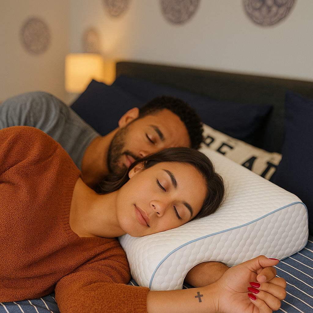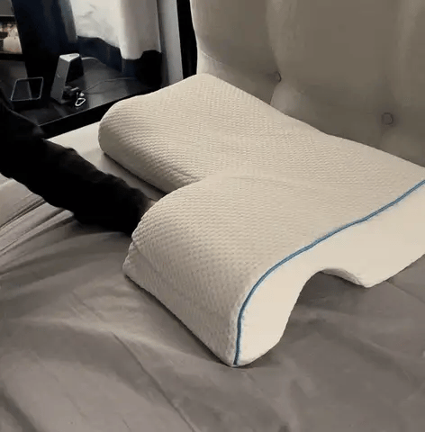 The Couple Cuddles Pillow’s unique design prevents arm strain, so you and your partner can snuggle comfortably for hours. Say goodbye to discomfort and hello to restful, cozy nights together.